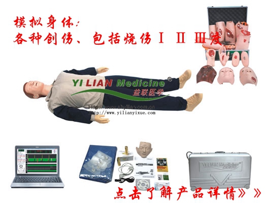相關(guān)急救模型:電腦高級(jí)心肺復(fù)蘇與創(chuàng)傷模擬人(計(jì)算機(jī)控制二合一功能)KAS/CPR800該系統(tǒng)是在KAS/CPR780型的功能基礎(chǔ)上進(jìn)行升級(jí)、除了KSA/CPR780型的全部功能配置外、還增加了全套創(chuàng)傷評(píng)估模塊功能。該套創(chuàng)傷評(píng)估模塊可將各部位安裝在模擬人身上,模擬身體各種創(chuàng)傷、包括燒傷Ⅰ Ⅱ Ⅲ度、撕裂、挫傷、異物刺激、開(kāi)放性骨折、閉合性骨折以及肢體斷裂等。本模件具體形象逼真的創(chuàng)傷特點(diǎn)、具有真實(shí)的操作手感、可模擬創(chuàng)傷部位的清洗、消毒包扎、固定和搬運(yùn)等操作。適用于外科創(chuàng)傷急救技能訓(xùn)練。