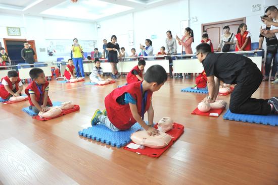 4日上午,晨報(bào)30余名小記者來到黑龍江省急救中心,參觀120急救指揮調(diào)度中心,在心肺復(fù)蘇模擬人上學(xué)習(xí)心肺復(fù)蘇技能。