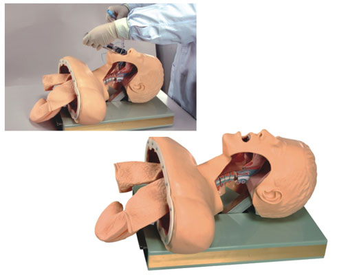 人體氣管插管是護(hù)理操作過程中比較困難的一種操作,人體氣管插管訓(xùn)練模型具備真實(shí)的訓(xùn)練場景是掌握氣道管理技術(shù)的關(guān)鍵,當(dāng)進(jìn)行氣管插管、人工呼吸、吸引和支氣管鏡檢查訓(xùn)練時(shí),該模型可以真實(shí)地模擬多種生理變化場景。