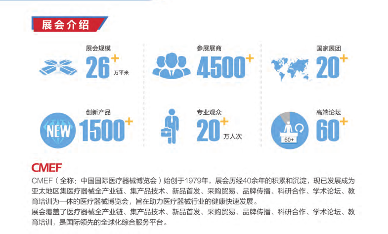 中國(guó)國(guó)際醫(yī)療器械博覽會(huì)(CMEF),始創(chuàng)于1979年,每年春秋兩屆,在經(jīng)歷了40年的不斷創(chuàng)新、自我完善,CMEF已成為醫(yī)療行業(yè)內(nèi)的專業(yè)醫(yī)療采購(gòu)貿(mào)易平臺(tái)、企業(yè)形象發(fā)布地以及專業(yè)信息集散地和學(xué)術(shù)、技術(shù)交流平臺(tái)。5月13-16日,2021第84屆中國(guó)國(guó)際醫(yī)療器械(春季)博覽會(huì)即將在國(guó)家會(huì)展中心(上海)舉辦。