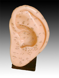 本模型用PVC制成,標(biāo)出了相對(duì)應(yīng)的人體內(nèi)臟和軀干在耳廓上的針穴位置。附穴位使用手冊(cè)。