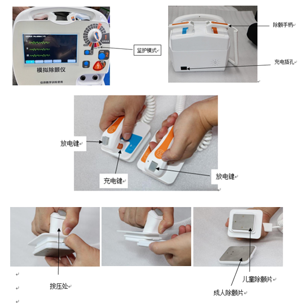 模型為高仿真的模擬除顫儀,具有真實除顫儀無差別的外形,操作流程與真實除顫儀操作無異,便于培訓(xùn)急救人員進行除顫訓(xùn)練。具有手動除顫和自動除顫(AED)功能。